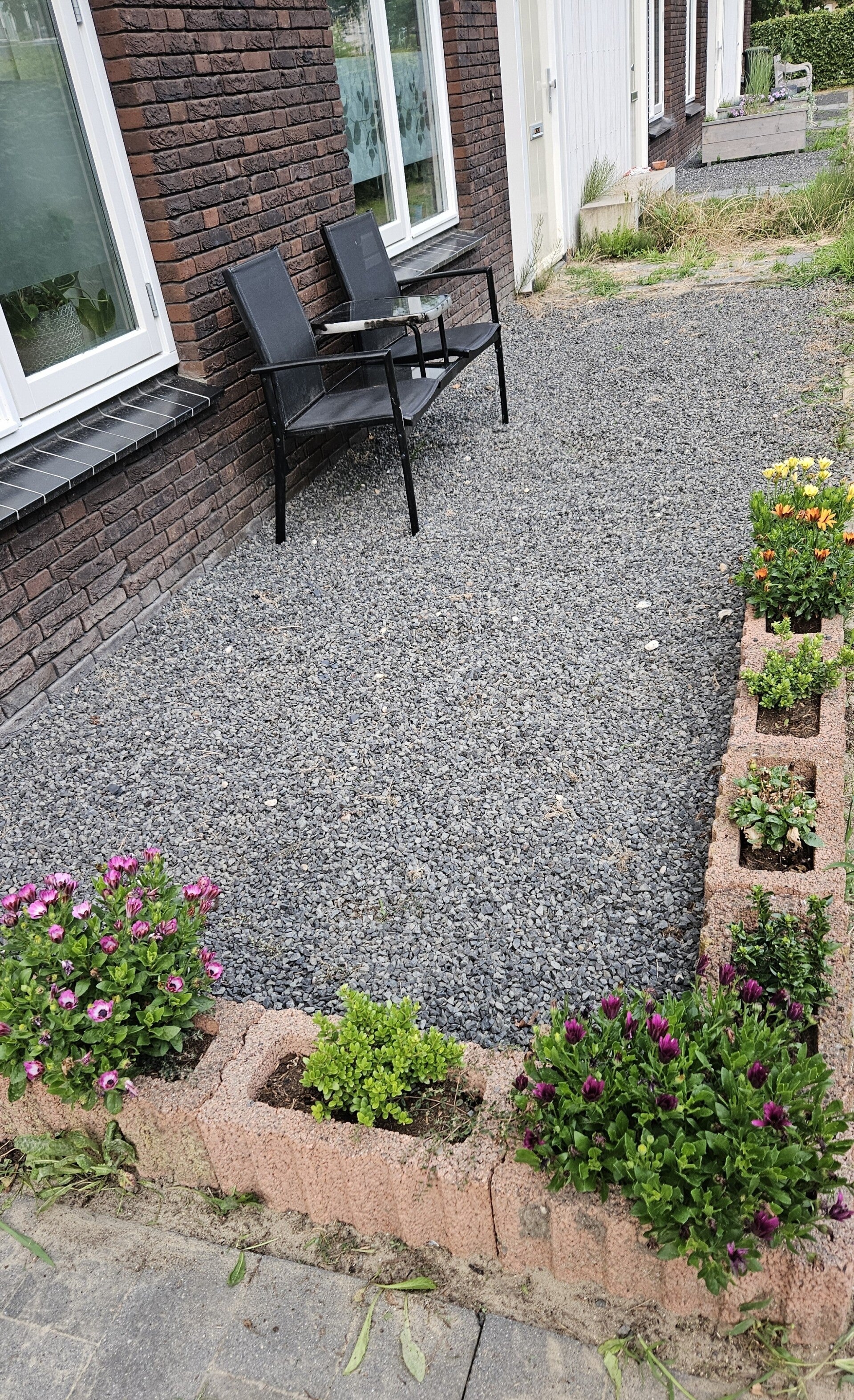 Hier is het grind zorgvuldig verwijderd, netjes teruggeplaatst en onkruidvrij gemaakt.